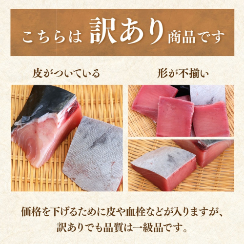 【説明】焼津の船元が選んだ逸品をお届けします。このお礼品は頭尾が含まれていますので、筋が苦手な方はお申込みをお控えください。筋が多い部位はすき身として、又は加熱調理してお召し上がりください。このお礼品は骨・皮付き・血栓・血合い等若干含まれ、形が不均一等の訳あり品です。また、包丁を使用するなど、多少の手間がかかりますのでご了承ください。お礼品名やお礼品説明に「訳あり」等の記載がある場合は、贈答用等には向きませんので、ご自宅用としてお選びください。※解凍方法の手順を同梱してお届けします