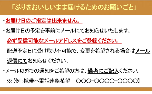 ※ひみ寒ぶり宣言により、受付期間終了が早まる場合がございます。何卒ご了承ください。