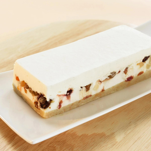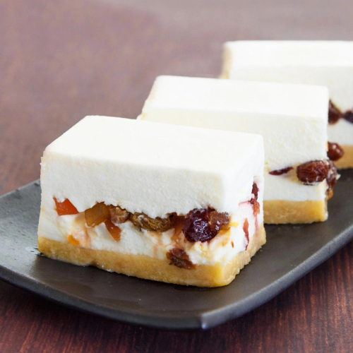 別海町製造のクリームチーズをたっぷりと使用して作るレアチーズケーキ。中に混ぜ込んだ5種(レーズン、グリーンレーズン、クランベリー、パパイヤ、マンゴー)のドライフルーツは、まるで輝く宝石のように見えます。もちろん、見た目だけではなく、食感、味のアクセントとしても重要な役割を担っております。冷凍状態から解凍したばかりのものと、解凍後2日冷蔵庫で保管した物は別物と言っても過言ではありません。ドライフルーツの中にゆっくり水分が浸透し、柔らかくフルーティーな味わいに。味、食感の変化と共に3日間ゆっくりとお楽しみ頂けます。