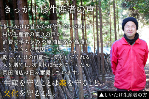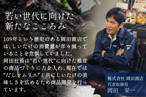 宮崎産の乾椎茸のうち、特に肉厚で丸型の大き目のどんこ椎茸だけを厳選し化粧箱に詰めました。