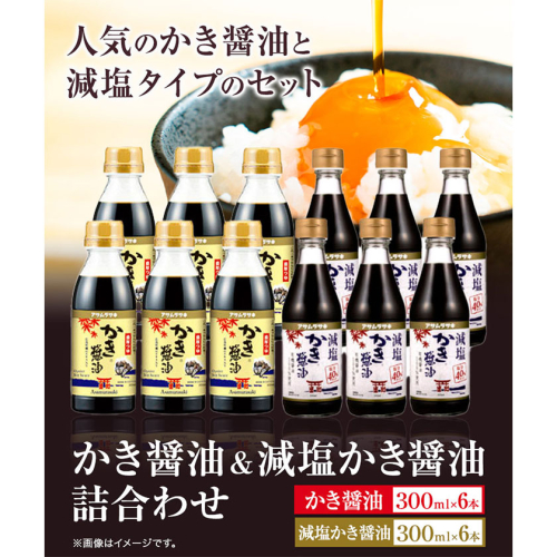 かき醤油 減塩かき醤油 詰め合わせ セット 各300ml×6本 計12本入り 株式会社アサムラサキ《45日以内に出荷予定(土日祝除く)》岡山県 笠岡市 送料無料 牡蠣 カキ 醤油 減塩 減塩醤油