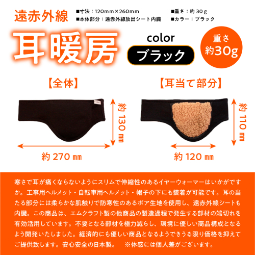 イヤーマフラー 冷え対策 遠赤外線 耳暖房 1個 [エムクラフト 福岡県 宇美町 um40azp110002] イヤーウォーマー イヤーマフ 温活 冬用 防寒 軽量 高品質