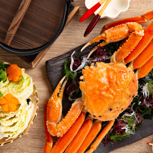 流氷がはぐくむ豊かな海で、毛ガニ・ズワイガニ・タラバガニの三大ガニのほか、ホタテ、鮭などの豊富な魚介類を味わえます。