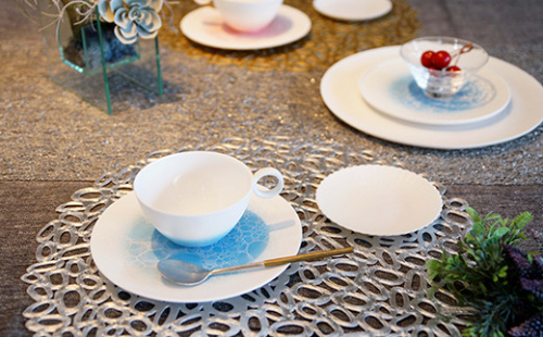 特殊な技法で、海の底から水面を見上げたようなキラキラした表情を器の中に閉じ込めました。