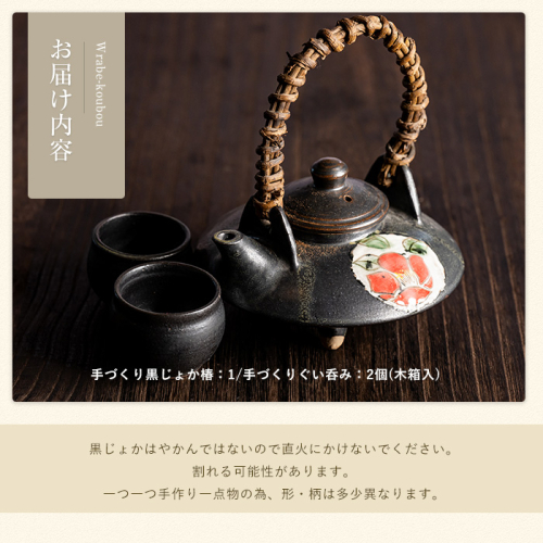 • 手づくり黒じょか「椿」(1個) ぐい呑み(2個・木箱入)【わらべ工房】warabe-7342