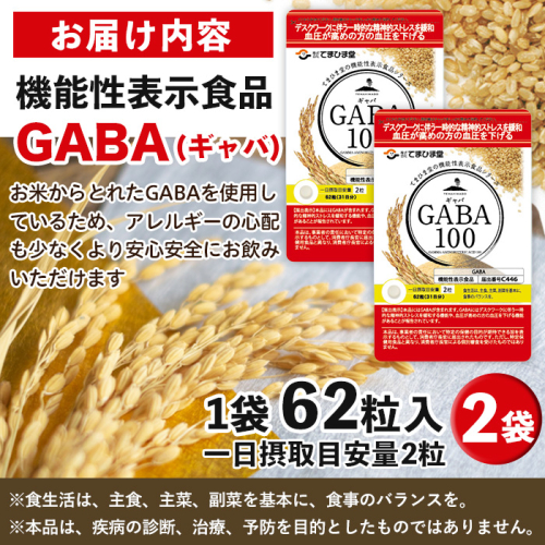 No.898 <機能性表示食品>GABA100(62粒入×2袋・計124粒)【てまひま堂】