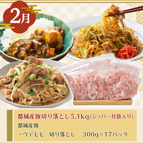 2月:都城産豚切り落とし5.1kg(ジッパー付袋入り)
