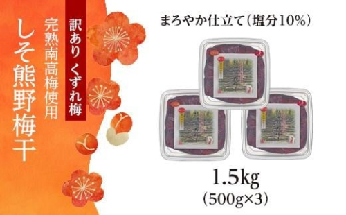 完熟南高梅使用 くずれ梅 しそ熊野梅干 1.5kg(500g×3)まろやか仕立て(塩分10%)【訳あり】
