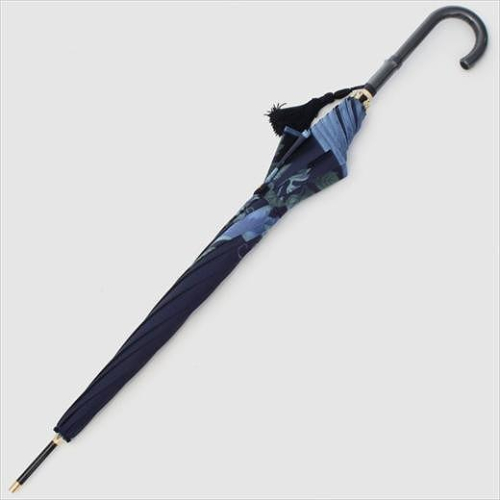 • 槙田商店【晴雨兼用】長傘 ”絵おり” 薔薇と葡萄 紺 FAA5073