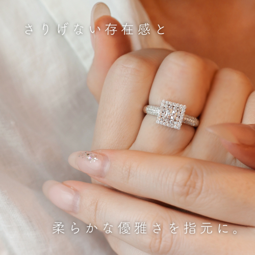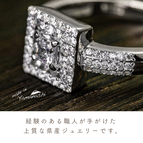 トップのスクエアデザインがスタイリッシュで、存在感のあるリングです。 西桂町・都留市に営業所を置く「リズプラス」がふるさと納税限定のジュエリーをディレクションしました。