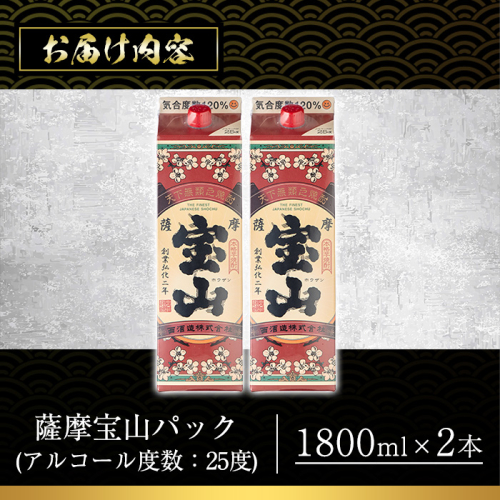 No.918 薩摩宝山パック(1800ml×2本)焼酎 酒 アルコール 家飲み 宅飲み 芋 薩摩芋 米麹 国産 パック 常温 常温保存【西酒造】