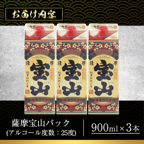 - No.919 薩摩宝山パック(900ml×3本)焼酎 酒 アルコール 家飲み 宅飲み 芋 薩摩芋 米麹 国産 パック 常温 常温保存【西酒造】
