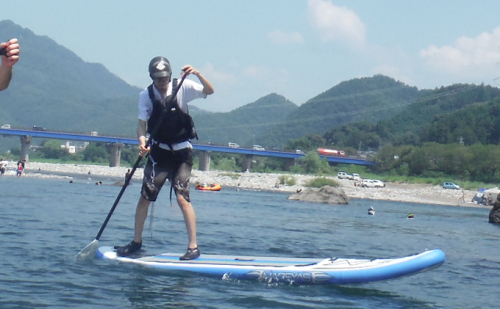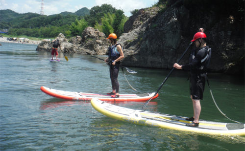 SUPは、施設集合後に長良川へ移動し体験。(集合・説明・体験で約2時間)