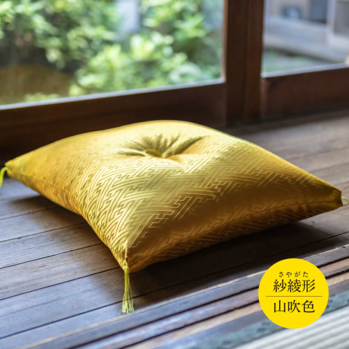 • 祝寿ざぶとん 座布団 ざぶとん 55cm×59cm 国産 お祝い 贈答 プレゼント 紗綾形 山吹色《45日以内に出荷予定(土日祝除く)》