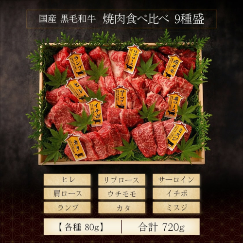 【国産黒毛和牛】焼肉食べ比べ 9種盛 各種80g_AE-E902