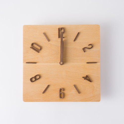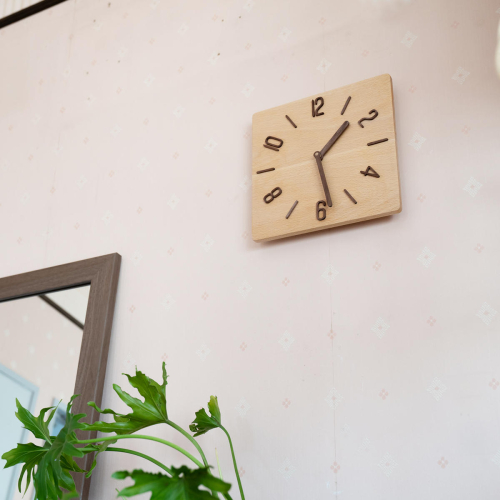 無垢材の木の掛け時計(ブナ) スクエア1台