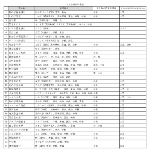 <特定原材料に準するもの>いか、いくら、さけ、大豆、鶏肉、ごま
