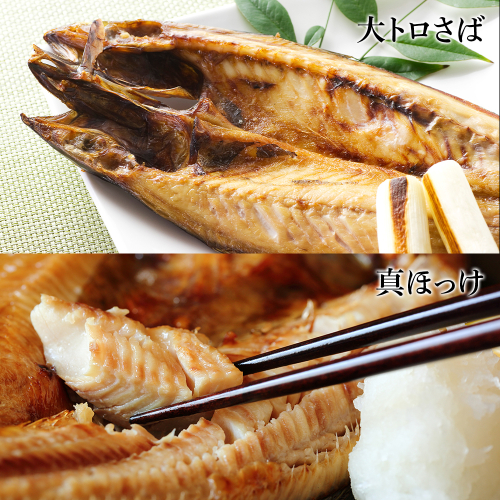 [原産地]北海道産(真ほっけ・子持ち宗八かれい・するめいか)、ノルウェー産・虎杖浜加工(大トロさば)