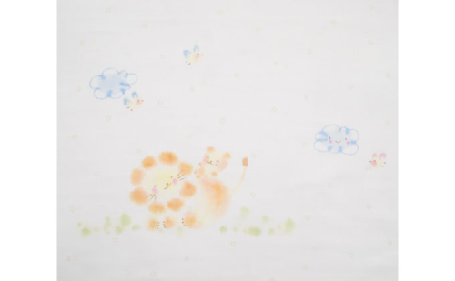 PGガーゼ ブランケット 手描らいおん親子 ベビー 赤ちゃん 用品 グッズ アイテム お出かけ 敷く 掛ける くるむ ガーゼケット コンパクト 外出 ベビーカー 上掛け 白 動物