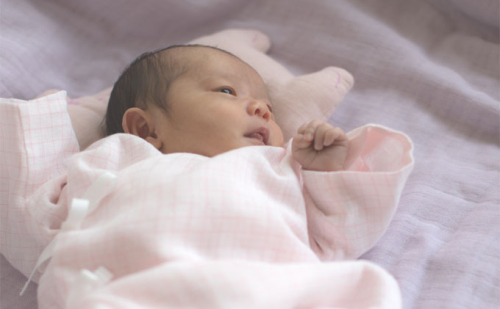 短肌着は身幅とリボンでサイズ調整ができ、コンビ肌着は股下をホックで留めるデザインなので抱っこの時にお腹が出る心配がありません。