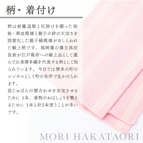 - 伊達締め 正絹 精品 1本 ピンク 01幅2.7寸(10.6cm)×6尺(225cm) [森博多織 福岡県 宇美町 um40azo810018] 伊達締 博多織 日本製 織物 国産 絹 着物 ピンク色