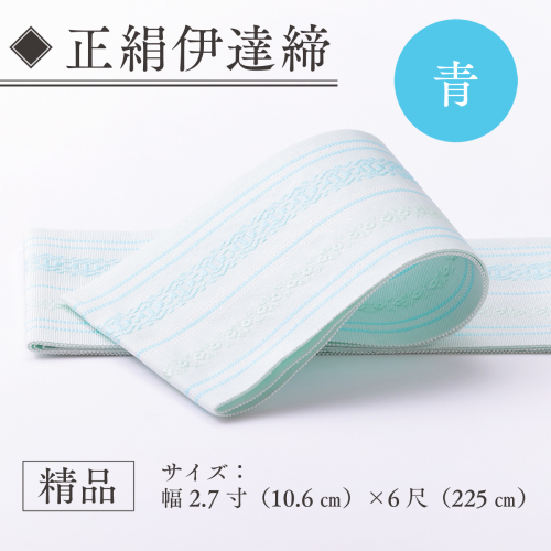 伊達締め 正絹 精品 1本 青 01 幅2.7寸(10.6cm)×6尺(225cm) [森博多織 福岡県 宇美町 um40azo810029] 伊達締 博多織 日本製 織物 国産 絹 着物 青色 ブルー
