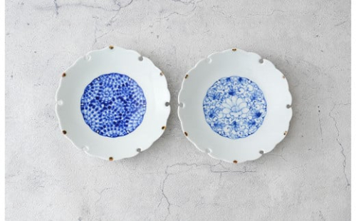 有田焼 雪輪5寸銘々皿 蛸唐草と花唐草の2枚セット 大慶 A18-188