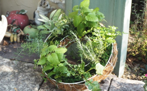 新鮮ハーブをビックサイズのアイアンサークルに植え込みました。飾ってよし、摘み取って使ってよしの寄せ植えです。