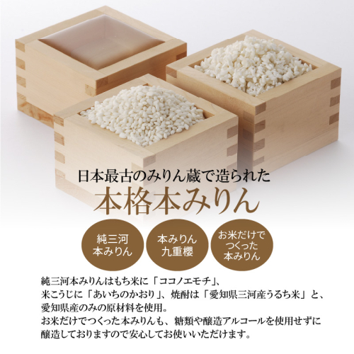 みりん 本みりん 詰め合わせ 3本 セット 各 500ml 元祖 三河みりん 純三河本みりん 本みりん九重櫻 日本最古のみりん蔵 本格本みりん 伝統 丁寧 調味料 料理 使い分け 上品 甘み 旨み 芳醇な香り お取り寄せ 愛知県 碧南市 送料無料 H002-083