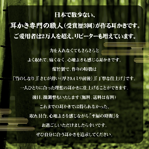 かき心地はオーダーメイドできる。日本で数少ない、耳かき専門の職人(受賞歴3回)が作る耳かきです。ご愛用者は3万人。