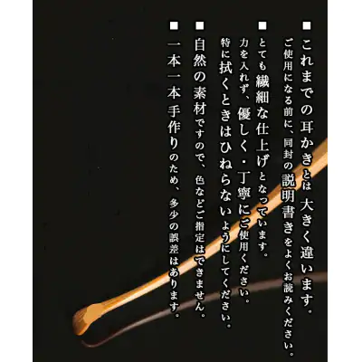※耳かきは、自然の素材ですので、色などご指定はできません。また一本一本手作りのため、多少の誤差はあります。