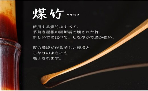 希少な煤竹(萱葺の古民家の囲炉裏の煙で長い年月燻された竹)製です。 一人ひとりに合った理想の「かき心地」に仕上げることができます。