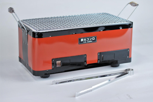 - バーベキューコンロ鉄板(赤)(縦385mm×横225mm×高さ180mm)、アミ付き、火バサミ