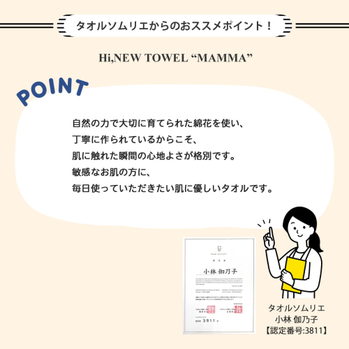 「MAMMA」は自然本来の力を利用してできた綿花を使用したオーガニックタオル。