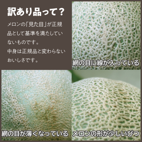 訳あり内容として、アンテナ(蔓)が曲がっていたり、ネット(表面)の形が悪かったりしており、