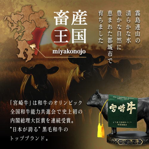 都城市は、肉用牛、豚、鶏の合計畜産産出額が日本一を誇る畜産のまちです。 当市の牛、豚、鶏は、雄大な霧島連山の自然に囲まれた大地で生まれ、清らかな水、良質な飼料、農家の温かい愛情が注がれ、大切に育てられています。 牛肉は、都城市内生産者の努力のもと、きめ細やかな霜降りと色艶の良い柔らかい肉質が特徴です。 5年に一度和牛の日本一を決める「第12回全国和牛能力共進会」(R4年10月)において、都城産の宮崎牛が最高賞である内閣総理大臣賞を4回連続受賞いたしました。 豚肉は、養豚農家各々が厳選した穀物に酵母、乳酸菌などを加えた飼料を与え、良質な肉質が特徴で多くのブランド豚が確立されています。 鶏肉は、それぞれの銘柄に合わせて独自の飼料や飼育方法で生産されています。 日本一の出荷額を誇る焼酎は、霧島山麓で育つサツマイモや地下深くからくみ上げられた清らかな水などを原料に作られ、全国の愛飲家に愛されています。市内4つの蔵元が生み出す、吟味を重ねた味わい深い個性的な焼酎は、たくさんの人たちを魅了し続けています。 「MADE IN 都城」、つまり「都城産」にこだわっています!