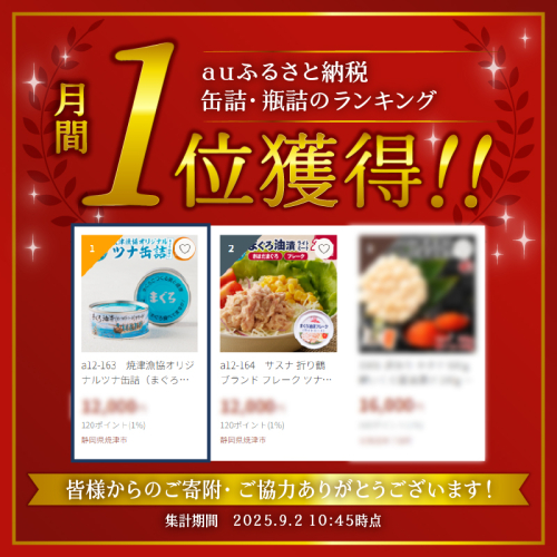 • a12-163 焼津漁協オリジナルツナ缶詰(まぐろ油漬け)12缶入