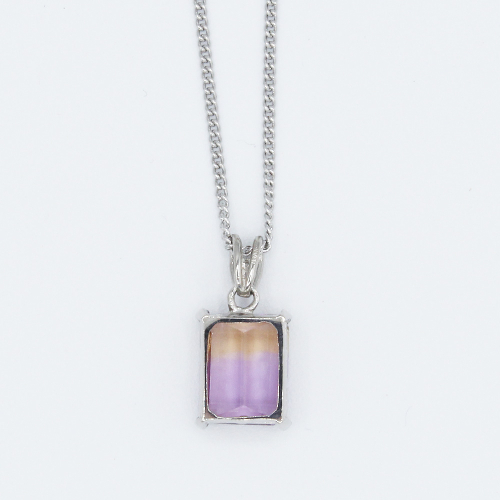 3.0カラットのアメトリン〔縦約10.0mm・横約8.0mm〕をシルバー枠に留めたシンプルなデザインのペンダントに仕立てました。