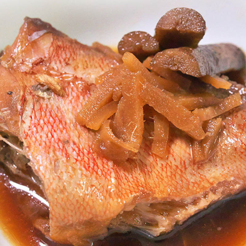 ■原材料:赤魚(アラスカ産)、砂糖、水飴、醤油、食塩、生姜/調味料(アミノ酸)、着色料(カラメル)、糊料(加工澱粉、キサンタンガム)、(一部に小麦・大豆を含む)