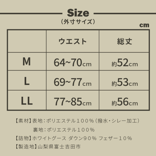 ~オールシーズンOK!軽量で暖かい上質羽毛スカート。キャンプや登山にもピッタリ。~