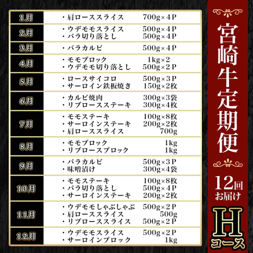 宮崎牛定期便(12回お届け) Hコース_TAI12-2501