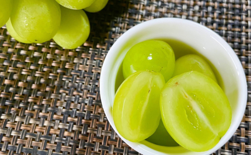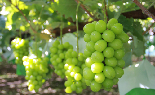種がなく皮ごと食べられるシャインマスカットは、ぶどうの女王と呼ばれています。果汁が多くジューシーで、パリッとはじける食感がたまりません。