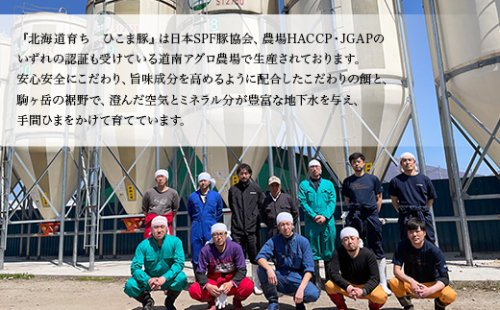 生産者の声:『北海道育ち ひこま豚』は、北海道の名峰「駒ヶ岳」の麓の、日本SPF豚協会、農場HACCP・JGAPのいずれの認証も受けている道南アグロ農場で生産されております。