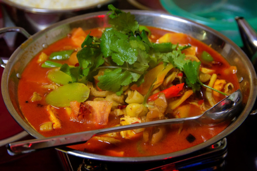 麻辣(マーラー)スープでお好みのお肉、お野菜、モツ等を煮込みます。