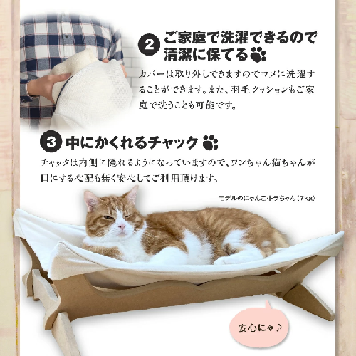 - 【リアルダウン使用】 ハンモックタイプの 羽毛ペットベッド クッション 犬や猫が喜ぶ! H162-042