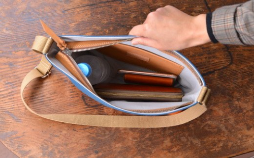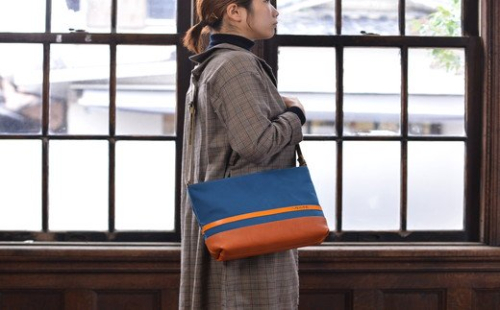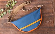 - ハンドメイド 八幡帆布鞄 ショルダーバッグ ヨコ型 琵琶湖ブルー 名入れ可 【CC10W】