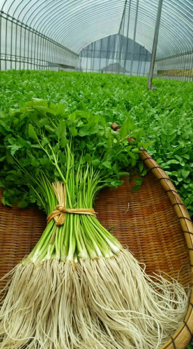 湯沢市三関の伝統野菜「三関セリ」。白くて長い、食べられる「根っこ」が自慢のセリです。