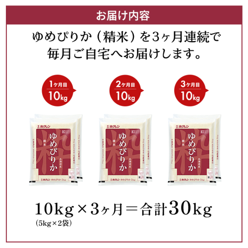 - 3ヵ月 定期便 ホクレンゆめぴりか(精米10kg(5kg×2袋))ANA機内食採用 お米 米 ごはん 精米 白米 国産 北海道 こめ コメ [JA新おたる]