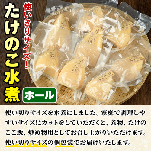 たけのこ水煮ホール(計800g・100g×8袋)国産 セット 小分け 野菜 煮物 竹の子ご飯 タケノコ 炒め物 カット済 簡単調理 常温配送【上野食品】akn008-10 601174 - 鹿児島県阿久根市