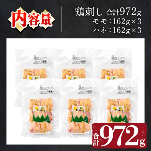 No.943-01 国産!両面炙り鳥刺し(合計972g・162g×6) 鳥刺し 鶏さし とりさし 鶏肉 とり肉 モモ ハネ おかず 惣菜 冷凍 簡単 おつまみ 真空パック【庄助】